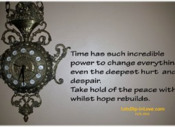 Time has such incredible power to change everything, even the deepest hurt and despair. Take hold of the peace within whilst hope rebuilds.