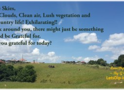 Clear blue skies, beautiful clouds, clean air, lush vegetation and simple country life! Exhilarating! If you look around you, there might just be something to love and be grateful for.