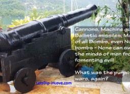 Cannons, Machine guns, Ballistic missiles, Mother of all Bombs, even Nuclear bombs – None can sway the minds of men from fomenting evil! What was the purpose of wars, again?